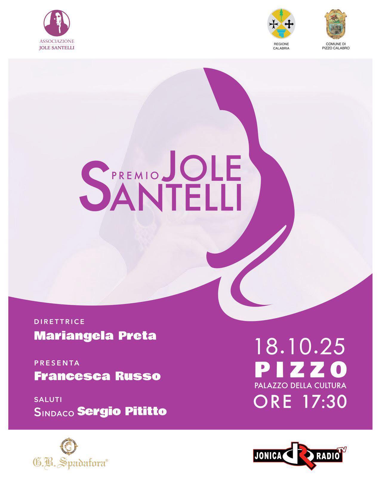 Il 18 ottobre, alle ore 17:35, presso il Palazzo della Cultura di Pizzo, si terrà la quarta edizione del Premio Jole Santelli, evento patrocinato dal Comune di Pizzo, che per la seconda volta ospita questa prestigiosa manifestazione. La serata sarà condotta dalla giornalista e presentatrice Francesca Russo e vedrà la partecipazione speciale delle sorelle Paola e Roberta Santelli.
