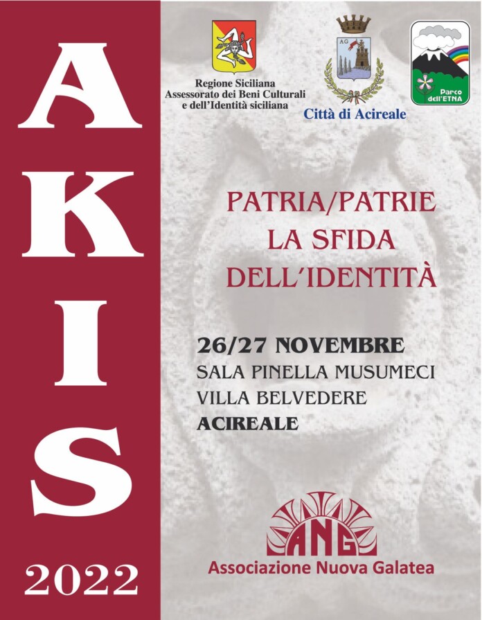 Quali sono i caratteri peculiari che connotano una comunità locale? E quelli che legano tra loro più comunità nel contesto di un’area regionale? Qual è lo specifico di un’identità nazionale? E, ancora, in che termini più comunità nazionali possono concorrere a delineare un’identità sovranazionale? Intorno a questi quesiti si è articolato Akis 2022. Patria/Patrie, manifestazione organizzata dall’associazione Nuova Galatea, ad Acireale il 26 e il 27 novembre, dedicata alle identità culturali e politiche, tema di indubbia rilevanza nell’attuale panorama storico che è stato affrontato al cospetto di una nutrita platea di pubblico secondo una pluralità di prospettive: quella politico-culturale, attraverso un confronto tra alcuni importanti attori politici del territorio siciliano, nazionale ed europeo; quella socio-economico, per mezzo di analisi e proposte da parte di operatori economici e culturali; quello della cultura materiale, con una mostra di prodotti tipici dell’agricoltura locale e una degustazione di eccellenze alimentari; quello della memoria, attraverso un’esposizione fotografica e una visita guidata ai monumenti artisticamente più pregevoli e di maggiore rilevanza storica; quello delle relazioni geopolitiche e geoeconomiche, con una tavola rotonda alla quale hanno partecipato importanti studiosi e personalità politiche.