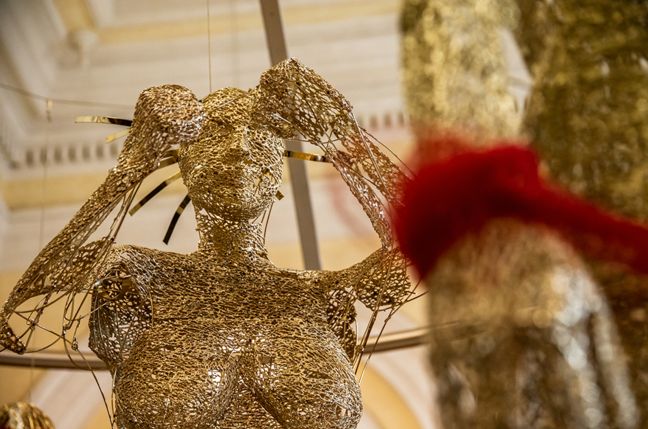 L’arte di Alessandro Galanti è un pretesto elegante e raffinato per raccontare la vita. Lo scultore, opere che rispecchiano il suo animo sensibile e buono attraverso una riflessione creativa molto intima, che gli consente di esprimere e rappresentare emozioni e sentimenti strettamente legati alla quotidianità. In particolare, Galanti, ha creato un’opera che, per forza espressiva e messaggio, è stata presentata nella Sala Koch a Palazzo Madama con il titolo “Omaggio a Ilenia” una ragazza vittima di violenza. L’opera affronta l’annoso e purtroppo tristemente attuale femminicidio. La scultura riproduce cinque donne sospese da terra, realizzate in metallo placato oro 24kt. Al centro si trova la vittima e intorno quattro donne che rappresentano gli stati d’animo espressi attraverso l’uso magistrale della simbologia. La forza, la rabbia, la necessità di difendersi ma anche l’impossibilità di vedere una via d’uscita e l’idea struggente del sentirsi legati ad un qualcosa dal quale pare impossibile sfuggire. L’artista ha poi voluto elevare la donna, protesa verso un ambito spirituale sottolineato ulteriormente attraverso l’uso dell’oro, come a voler donare ulteriore sacralità. Ciò che rende straordinarie le opere di Galanti, è la capacità di celebrare sempre la vita. L’eleganza che contraddistingue ogni oggetto o scultura, appartiene infatti alla sfera della luce, vera ricerca dell’artista e sinonimo di un’espressione straordinariamente poetica.