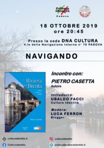 Da non perdere l’appuntamento con CulturaIdentità Padova per l’interessante presentazione del libro “La riviera del Brenta. Guida in barca ed in bici” di Pietro Casetta con la partecipazione di Luca Ferron e di Ubaldo Facci di CulturaIdentità.