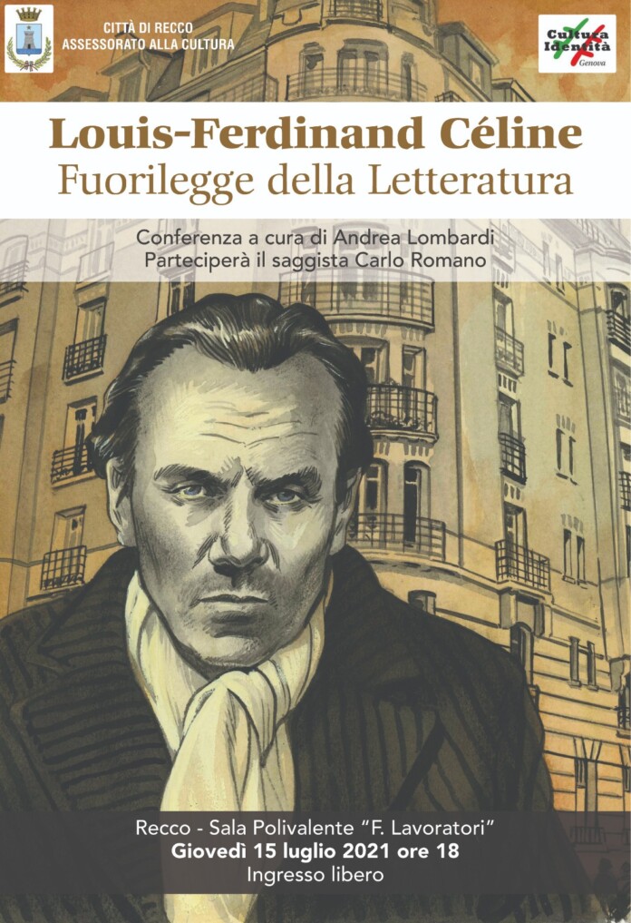 Giovedì 15 luglio 2021 ore 18.00 nella Sala Polivalente “Franco Lavoratori” di Recco in via Ippolito D’Aste, si terrà la conferenza dal titolo “Louis-Ferdinand Céline, fuorilegge della letteratura“.