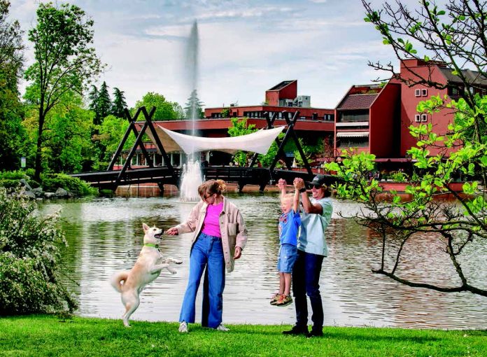 Lo sviluppo di Milano 3 fu affidato a Edilnord, la società immobiliare del Cavaliere. L’ambizione era chiara: non soltanto «costruire case», ma plasmare un ambiente, disegnare uno stile di vita, dare forma a un modello di convivenza in cui le persone potessero crescere, lavorare, incontrarsi e rigenerarsi. Il progetto si ispirava alle città-giardino anglosassoni, adattandole al contesto lombardo e alla cultura italiana, fatta di piazze, di relazioni e di convivialità. L’architettura degli edifici, razionale e sobria, era intrecciata a una cura quasi ossessiva del verde. A trasformare l’urbanistica in ecologia quotidiana furono introdotti parchi, giardini e percorsi alberati come vere e proprie infrastrutture di benessere. Il verde non era una cornice, ma la struttura portante: laghetti, filari, piazze naturali e connessioni pedonali che permettevano a chiunque, uscendo di casa, di ritrovare la bellezza di uno spazio vivo, respirabile, sociale. Oggi potremmo definirlo un quartiere biofilico, ante litteram. Camminando lungo i viali alberati di Milano 3, costeggiando i laghetti abitati da cigni e anatre, ci si accorge che la natura non è un contorno, ma la trama stessa della vita quotidiana. Ogni residenza è stata concepita per avere a pochi passi un grande spazio verde, luogo di gioco per i bambini, di sport all’aria aperta, di incontro intergenerazionale.