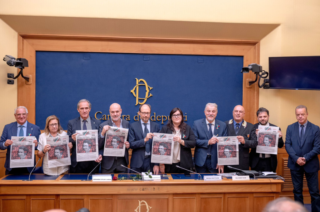 Alla fine della presentazione dell’iniziativa, parlamentari, associazioni e i tanti presenti sono andati a deporre una rosa rossa davanti al Parlamento, portata da Edoardo Sylos Labini come apertura simbolica delle celebrazioni di «Una Rosa per Norma» in questo ottantesimo anniversario.