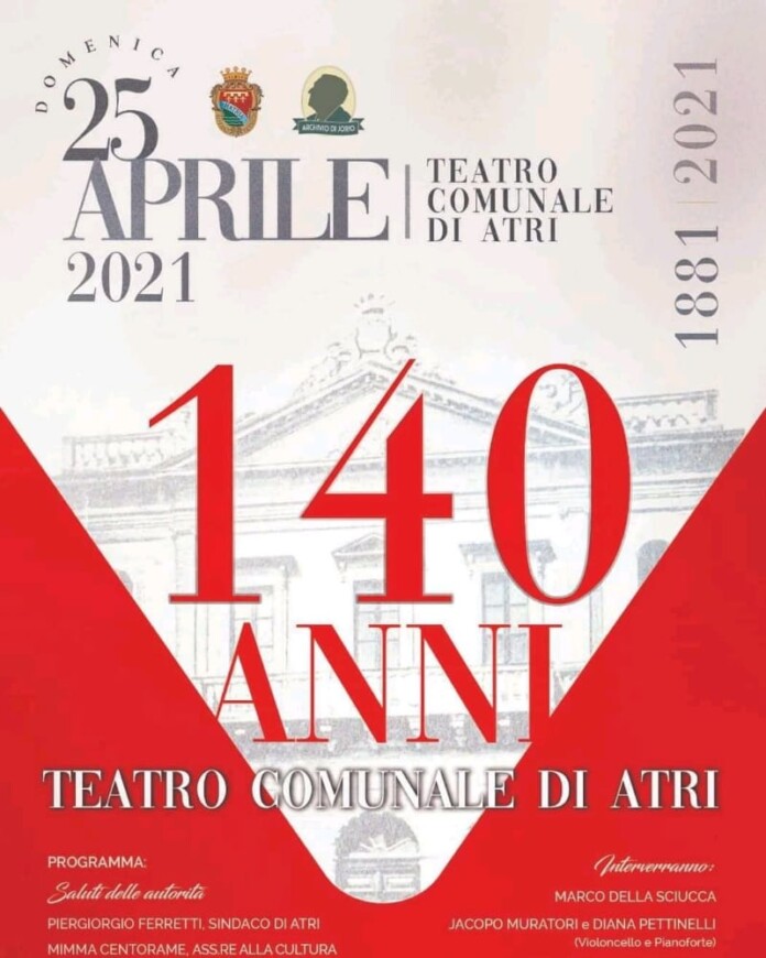 L’evento, in programma senza pubblico per il 25 aprile 2021, sarà poi trasmesso il 26 Aprile 2021 sulla pagina Facebook e sul canale YouTube del Comune di Atri. Tra i tanti ospiti provenienti dal mondo del teatro e dell’arte, ci saranno collegamenti con il tenore Riccardo Della Sciucca, il baritono Matteo Maria Ferretti, il direttore d’orchestra Cesare Della Sciucca e il direttore artistico dell’Associazione Amici della Musica 2000, Algino Battistini. Saranno, invece, presenti sul palco il compositore Marco Della Sciucca, il violoncellista Jacopo Muratori e la pianista Diana Pettinelli, insieme all’attrice Valeria Angelozzi e il Leonzi Swing Quartet formato da Concezio Leonzi, Riccardo Mariani, Jacopo Lolli e Matteo Di Rocco. A condurre l’evento sarà l’eclettica giornalista Evelina Frisa.
