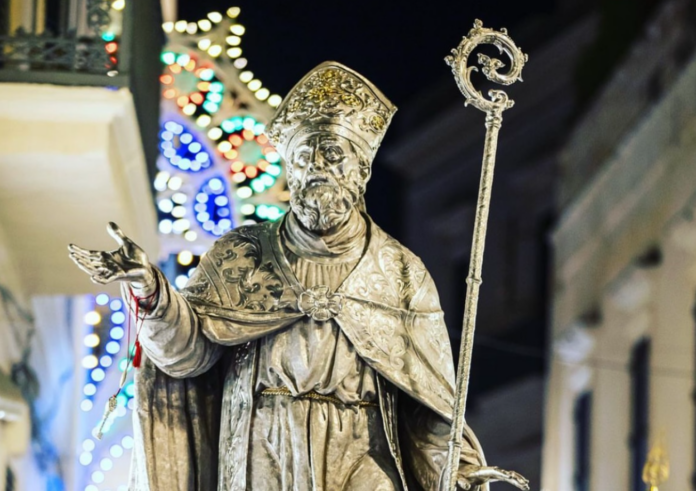 Sant’Oronzo, figura luminosa e venerata, incarna la forza della fede, la dedizione incrollabile al messaggio di Cristo e un legame indissolubile con la terra del Salento, che lo considera il suo protettore per eccellenza. Nato col nome di Publio a Rudiae, antica località messapica già patria del poeta Quinto Ennio, nel 22 d.C., proveniva da una nobile famiglia pagana. Suo padre, tesoriere dell’Imperatore, gli trasmise una posizione di prestigio che Publio ereditò a soli 35 anni, vivendo una vita immersa nei doveri terreni. Tuttavia, il suo destino si trasformò grazie a un evento straordinario che lo portò a diventare uno dei pilastri della cristianità nella regione.