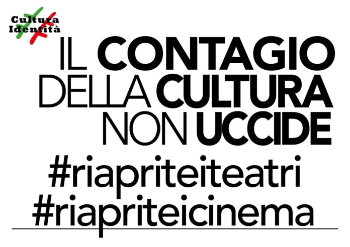 Il contagio della cultura non uccide. Con questo slogan, CulturaIdentità – associazione fondata nel 2018 dall’attore ed editore Edoardo Sylos Labini, che edita l’omonimo mensile in edicola, con migliaia di iscritti divisi in coordinamenti territoriali in tutta Italia – si è battuta ottenendo la riapertura dei musei, con centinaia di militanti che simbolicamente hanno avanzato la protesta davanti a decine e decine di musei di tutta Italia. Oggi, con quelle stesse parole e con il medesimo spirito, CulturaIdentità chiede al Governo la riapertura immediata di teatri e cinema italiani, almeno nelle zone gialle come già fatto per i musei, in sostegno alle migliaia di attori, registi, sceneggiatori, tecnici, degli operatori del settore. I nostri iscritti saranno presenti davanti ai teatri e ai cinema italiani per estendere la protesta.