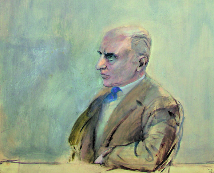 Luca Vernizzi -Ritratto di Indro Montanelli. Tempera su carta intelata, 1976, cm 150 x 85