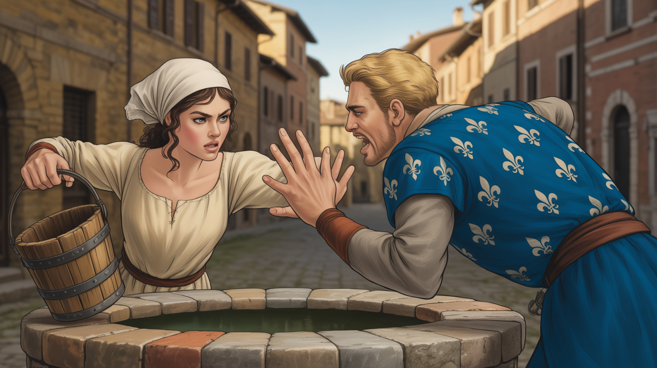 Gammazita, per difendere il proprio onore e non cedere alla prepotenza dell’odiato francese, si gettò di sua volontà nel pozzo profondo. Il suo corpo non fu mai più ritrovato. Si dice che le macchie di ruggine sulle pareti del pozzo siano le tracce del sangue di Gammazita che ancora grida vendetta. Una vendetta che sarebbe arrivata di lì a poco, quando scoppiò la rivolta del Vespro Siciliano (30 marzo 1282), e i catanesi ricordarono il sacrificio di Gammazita come simbolo della resistenza all’oppressore francese. Una rivoluzione scatenata a sua volta da un’altra violenza tentata da un tronfio occupante sui siciliani, stavolta a Palermo: durante il vespro del Lunedì di Pasqua del 1282 della soldataglia francese decise di insolentire i palermitani che s’erano riuniti fuoriporta a festeggiare. I siciliani da anni sopportavano ogni sopruso degli angioini, che erano arrivati a rapire i capifamiglia e pretendere dei riscatti e perfino profanare le chiese per rapinarle dei loro ricchi arredi sacri. Ma quando la sbirraglia francese mise le mani su una donna palermitana, la misura fu colma.