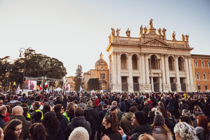 Noi siamo andati invece a dare un’occhiata a Piazza San Giovanni a Roma, dove Enrico Montesano, come tante altre volte, è stato il simbolo delle tante sigle di comitati presenti che combattono contro le discriminazioni del green pass e dell’obbligo vaccinale. Con lui sono intervenuti il magistrato Angelo Giorgianni e Antonio Porto, segretario generale del sindacato di Polizia Libertà e Sicurezza che ha riunito circa 50 mila tra poliziotti, carabinieri e uomini in divisa che hanno giurato sul diritto al lavoro della nostra Costituzione e che sono stati sospesi perché non vaccinati.