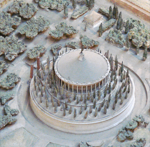 Il bosco sacro piantato negli anni Trenta del secolo scorso riprendeva quelli degli antichi, come descritto da Strabone. Lo scopo dell’alberatura, oltre che restituire amenità al luogo, era quello di riportarlo a una altezza dal piano stradale vicina a quella presumibile dell’originale, affinché il rudere svettasse al centro della piazza e non sembrasse una sorta di rotatoria mal riuscita. Tutto attorno, poi, la piazza era sistemata a sanpietrini e ampie alberature. Un ricordo del passato, oggi completamente ridotto in segatura. La piazza, come il bosco sacro, è stata totalmente pelata dei suoi alberi, in uno scempio iniziato già con la precedente giunta. Lo spazio immaginato da Augusto stesso come un vasto giardino pubblico attorno alla sua tomba di famiglia, re-immaginato dagli urbanisti del Ventennio come piazza monumentale, nel dopoguerra del “tutti a casa” permanente effettivo era stato di nuovo ridotto a luogo come tanti: parcheggio e capolinea per gli autobus, mentre vicino al rudere, nei suoi giardini, si accampavano i barboni e la borghesia-bene della ZTL mandava i cani di casa a fare i bisognini. Certo, l’antica grandezza prebellica resisteva, nonostante tutto. C’è voluto il nuovo secolo, prima con l’oscena sostituzione dell’elegante teca di Morpurgo (pensate un po’: doveva essere una soluzione temporanea…) con la famigerata “pompa di benzina” dell’archistar Richard Meier e quindi con gli inutili scavi (chissà cosa s’aspettavano di trovare di nuovo, visto che l’area era stata passata al setaccio già cent’anni fa sotto la sapiente direzione di Guglielmo Gatti…) e il colpo di grazia è arrivato con la devastazione dell’ultimo decennio.