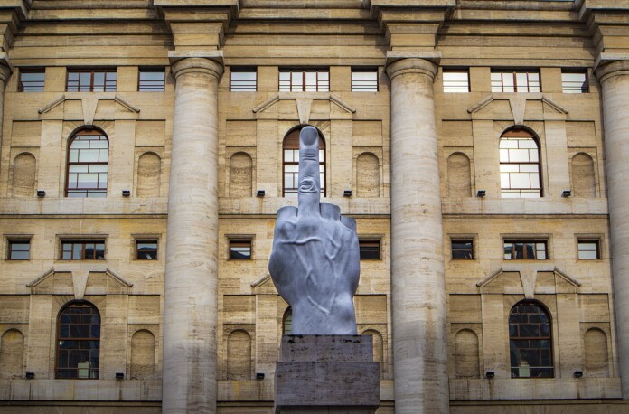 In merito alle statue di Colombo abbattute: cambierei anche tutti i corsi e le vie e le piazze Cristoforo Colombo in Italia ed anche quelle intitolate a Garibaldi, che fu un guerrafondaio e ladro di cavalli, pur in nome dell’Italia. Nel pensare una futura palingenesi e immaginare il definitivo progresso dell’umanità terrei invece la statua di Lenin a Capri, sublime sunto del radical chicchismo dei nocchieri che sostano in piazzetta. E terrei pure quella della Arcuri a Porto Cesareo, altrettanto sublime ma al contrario esempio della cafonaggine nazional popolare. Decapiterei la statua garitta del Papa a Termini Roma (e lo posso dire io, che ho pur studiato alla Cattolica di Milano, piena ancora di sostenitori delle Crociate). E abbatterei pure il Napoleone canoviano in forma di Apollo di Brera Milano: l’imperatore fu un recidivo guerrafondaio sterminatore in primis di militi francesi. Così come per lui, damnatio memoriae anche per i Medici (vi ricordate quanto furono sanguinari nella vicenda dei Pazzi?), i Gonzaga e gli Sforza, armigeri e predatori. Il Castello Sforzesco lo rinominerei Castello Milano (come il salame a grana grossa). Rinominerei anche le vie IV novembre (“colle armi assaltammo l’Austria”), rinominerei le vie XX settembre (“colle armi conquistammo Roma”). Innalzerei invece più, di più, ancor di più, diti medi alzati cattelaniani, così che finalmente ogni nostra città e borgo abbia il suo benemerito fuck off