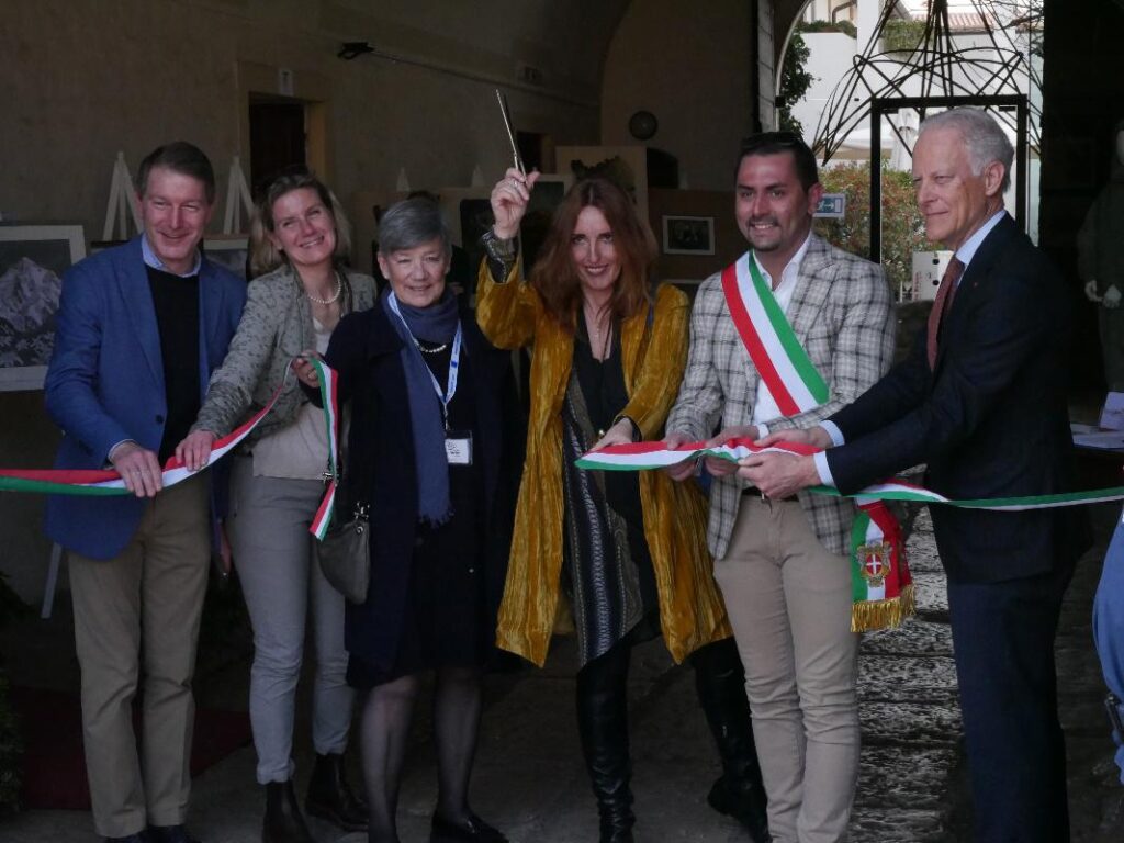 Marco e Maria Zamberlan, Daniela Zanettin, Elena Donazzan, Moreno Marsetti e Giorgio Xoccato al taglio del nastro dell’evento collaterale del Premio Zamberlan K2 1954