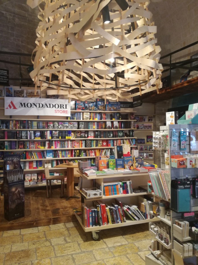 Il Mondadori Bookstore Bisceglie nasce da uno dei 5 bastioni che, dalla metà del 1400, costituivano la cinta muraria della città, terra di mezzo tra Bari e il Gargano, a difesa dai Turchi. Il bastione di San Gennaro nel 1956 venne acquistato da Giacomo Mastrototaro, che tra quelle antiche mura dette inizio alla sua attività: una segheria, dove il fusto del pioppo veniva trasformato in cassette di legno che ben presto iniziarono a fare il giro del mondo trasportando frutta ortaggi di quella terra. Nel 1990 la famiglia Mastrototaro ristruttura l’edificio riportando le antiche mura all’antico splendore e valore storico. Inizia una serie di attività legate al sociale. E il sociale è cultura. Nel 2013 Giacomo Mastrototaro scompare e nel 2017 il figlio Mauro e sua moglie Antonella Lovero, fanno nascere una libreria che è qualcosa di unico, il Mondadori Bookstore Bisceglie, una a libreria dalle radici molto profonde, fatta di antiche mura ed elementi che rimandano alla tradizione, come la sega a nastro, i tronchi, mentre al centro della sala troneggiano una scalinata in legno e una scultura anch’essa in legno: tutt’intorno, naturalmente, i libri, tanti libri, fatti di carta e quindi di legno. Libri ce ne sono per tutti i gusti e per tutte le età, ma non ci sono solo loro. Il Mondadori Bookstore Bisceglie ha realizzato, in soli 2 anni di vita, conferenze, concerti, mostre (perché “una serata all’insegna della cultura è una serata ben spesa”), progetti “arditi” come l’abbinamento del piacere della lettura a quello del palato con l’omaggio di specialità gastronomica firmate Mastrototaro Food (perché “l’impegno costante delle Vecchie Segherie Mastrototaro è per la valorizzazione della tradizione enogastronomica della nostra terra”) per chi fa un pieno di libri e iniziative piuttosto importanti: lo spazio è provvisto di una cucina professionale, ciò che rende particolarmente unici gli incontri con autori di spicco e personalità del mondo della cultura e della comunicazione come Paolo Giordano, Michele Mari, Elvira Serra, Edgarda Ferri, Andrea Bajani, Marcello Veneziani, Filippo Ceccarelli, Enrico Letta, Vittorio Sgarbi e Fedele Confalonieri, per citarne alcuni. Questa giovane, giovanissima storia di Mondadori Bookstore Bisceglie è una storia di forza e caparbietà, di passione e amore per la cultura, che da oggi si avvale anche della professionalità di Viviana Peloso e Francesco Bombini, librai qualificati con esperienza pluriennale e un profondo amore per i libri e la lettura “perché le migliori scoperte partono dal cuore. Quello di Mondadori Bookstore Bisceglie batte per la cultura”.