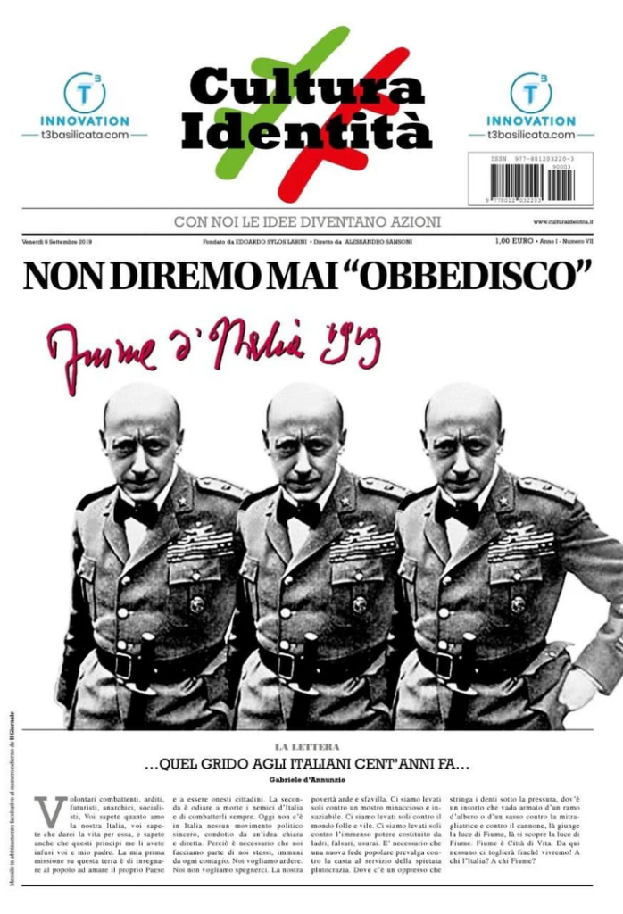 Nell’anniversario del Volo su Vienna di Gabriele d’Annunzio scarica il numero speciale di CulturaIdentità sull’Impresa di Fiume con le firme di Sylos Labini, Veneziani, Corsini, Crespi, Barbi Marinetti, Rapisarda, le interviste a Giordano Bruno Guerri e a Giuseppe Parlato.