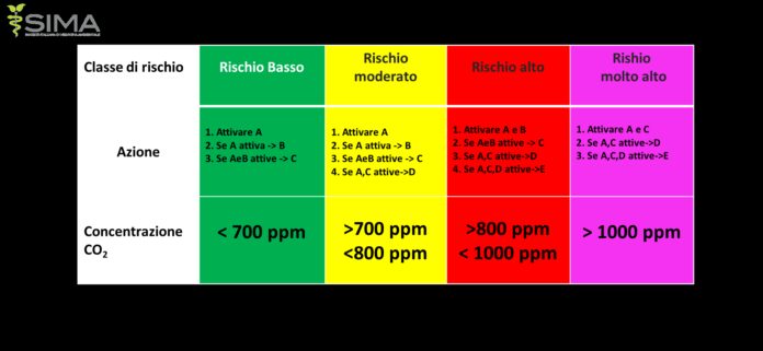 “SIMA intende dare il proprio contributo, basato su evidenze scientifiche, per giungere a riaprire in sicurezza tutte le attività scolastiche, lavorative e ricreative” – spiega il professor Alessandro Miani, Presidente di SIMA – “Fin dall’inizio della pandemia ci siamo interessati alla ricerca di affidabili indicatori che potessero consentire nella vita quotidiana la minimizzazione del rischio di contagio negli ambienti indoor, dato il rischio di trasmissione diretta inter-personale e per via area (la cosiddetta “airborne transmission route”), individuando nella CO2 un possibile parametro utile e semplice da monitorare, in quanto rivela se la ventilazione naturale o supportata di sistemi meccanici dei nostri spazi chiusi sia sufficiente a diluire – in relazione al numero delle persone presenti – la potenziale carica virale di cui uno o più soggetti possono essere portatori”.