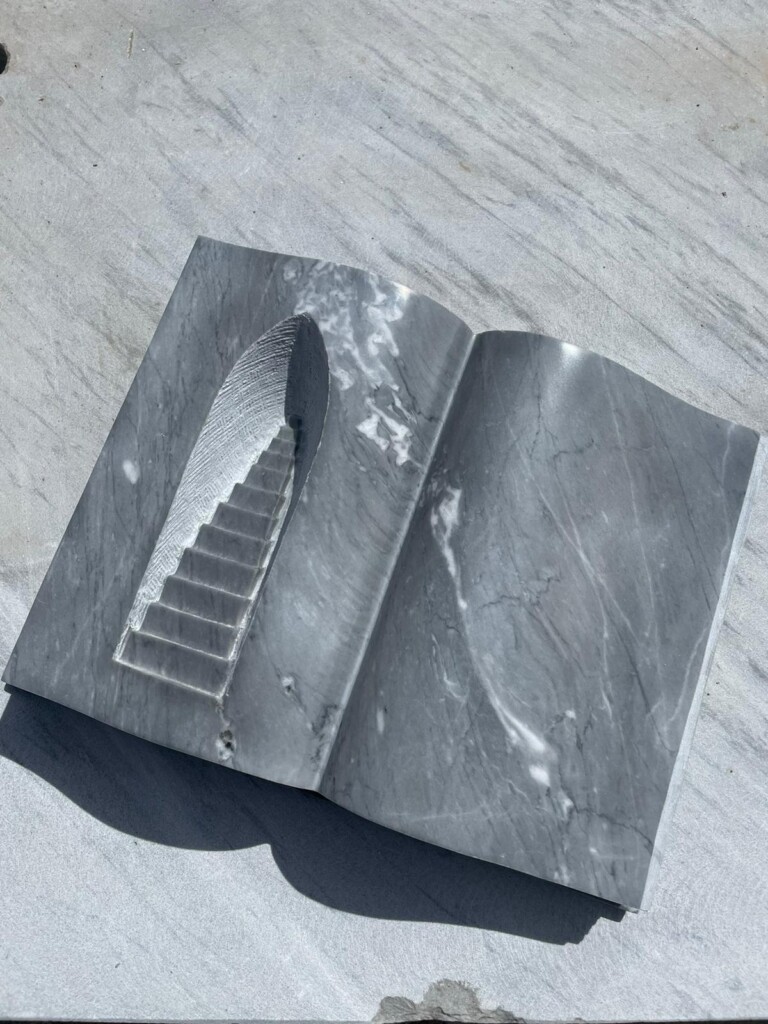 Artista internazionale con gallerie da Londra a Berlino, Aidan Salakhova artista azero-russa con uno studio anche a Carrara, lavora soprattutto con il linguaggio della scultura. I suoi lavori mettono insieme immagini profonde e archetipiche, con riferimenti alla propria cultura di origine tradotta in una prospettiva internazionale. Sorretta da una tecnica straordinaria, riesce a creare opere che nella figurazione scoprono nuovi possibilità espressive. Ma la sua sintesi estetica va nella direzione di un’ arte senza confini né barriere linguistiche o culturali. Nella serie “Without words (Books series)” del 2020 i libri realizzati in marmi pregiati sono testimonianze visive e tattili di un’adesione totale alla cultura come bene sociale e scambievole, come fondamento della tolleranza. Le opere, veri e propri piccoli monumenti al valore del libro come fattore di sapere condiviso, sono testimonianze di come la scultura possa “parlare” a tutti attraverso un linguaggio innovativo e contemporaneo quanto universale.